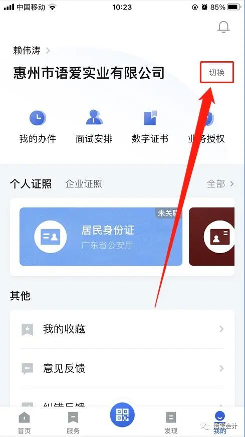 獲取到自己的公司企業(yè)之后,點(diǎn)擊[選擇一家公司名稱(chēng)],再點(diǎn)擊[選擇辦事];